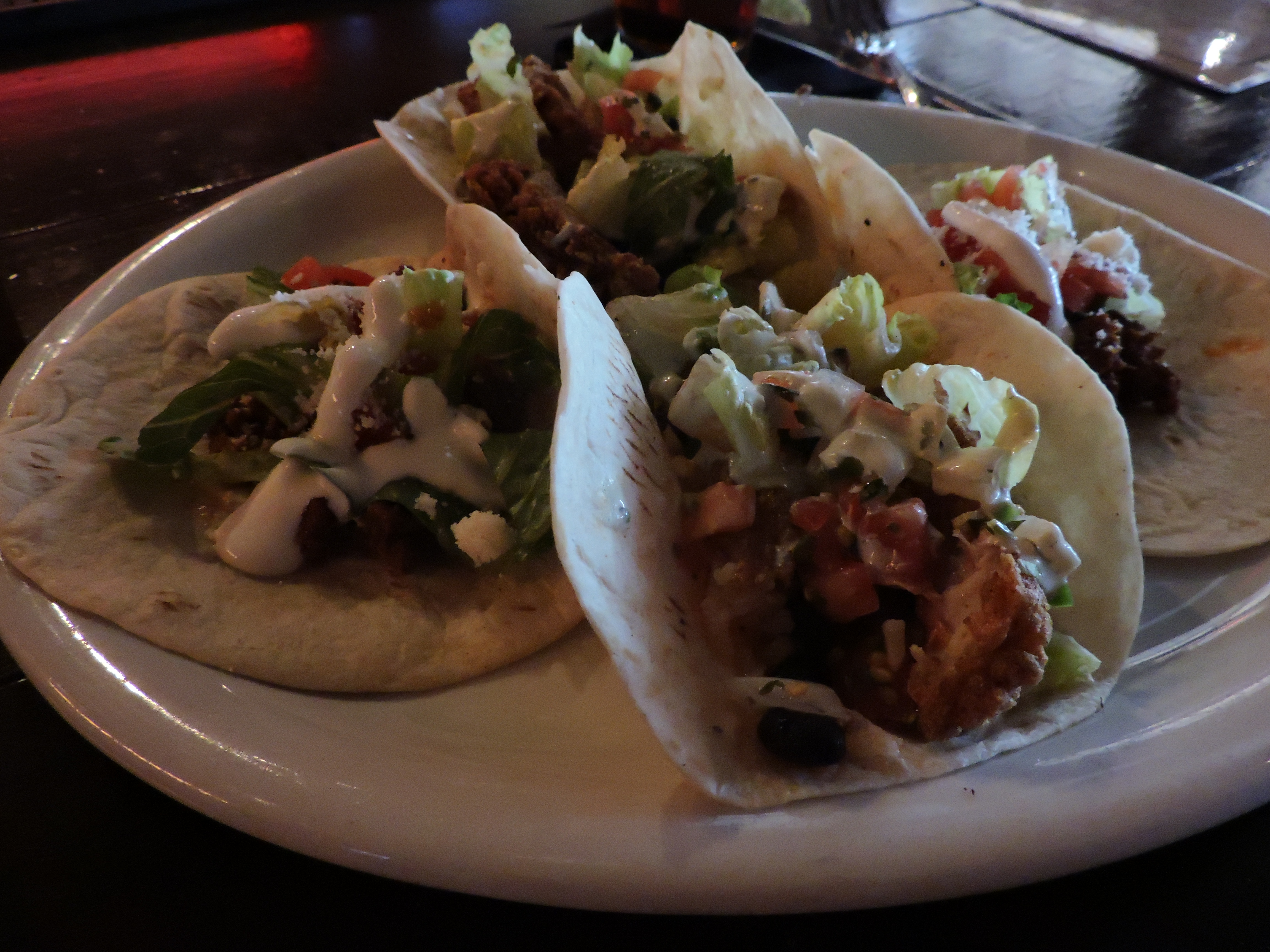 Full disclosure: We frequent this place more than any other in town. Yes, it’s five blocks from the apartment, but more than that, it has so much to offer. The happy hour items are half price on beer and wine, and 50 cent raw oysters. We were fortunate enough to get a sneak preview of upcoming happy hour entrees. More on that later…